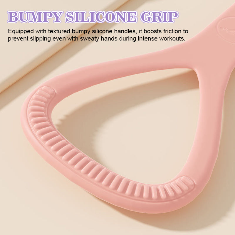 Handtagen har en texturerad yta som ger ett säkert grepp även om händerna blir svettiga. De små upphöjningarna ger dessutom en lätt massageeffekt för handflatorna under träningen. ✋