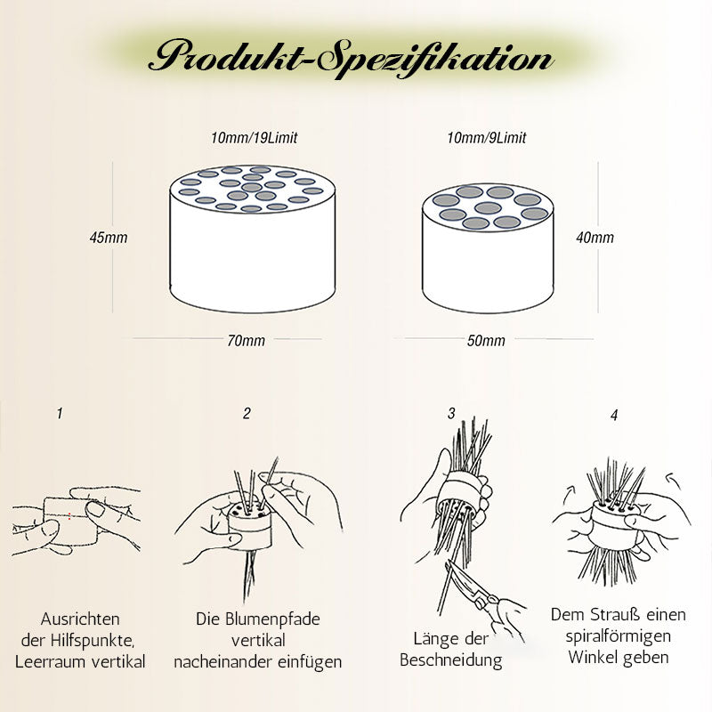 💧 Vattentålig: Oroa dig inte för att hålla dina blommor fräscha. Våra hållare är utformade för att fungera perfekt i vattenfyllda vaser, vilket säkerställer att dina blommor håller sig hydrerade och livfulla längre.