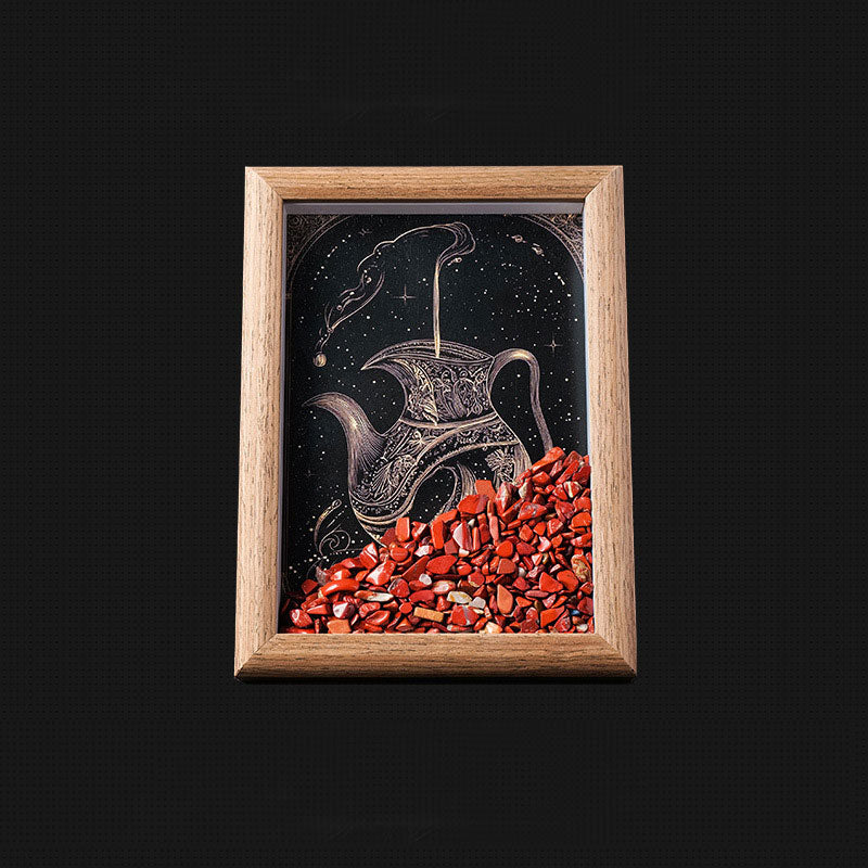 Varje ram innehåller fint slipade, äkta kristallbitar. De glittrar i ljuset och bär naturens rena, positiva energi – en symbol för skydd, fred och inre balans.